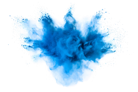 explosion of dry blue paints on a transparent background. cloud and paint particles. Holi paint