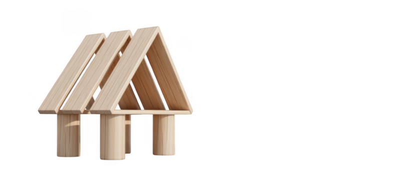 Close-up view of various wooden blocks meticulously arranged in a pyramid-like structure.  The blocks are diverse shades of wood.