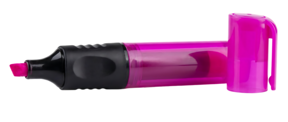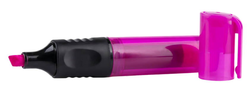 A pink highlighter with black tip and cap on transparent background high quality professional detailed modern elegant stylish clean crisp vibrant