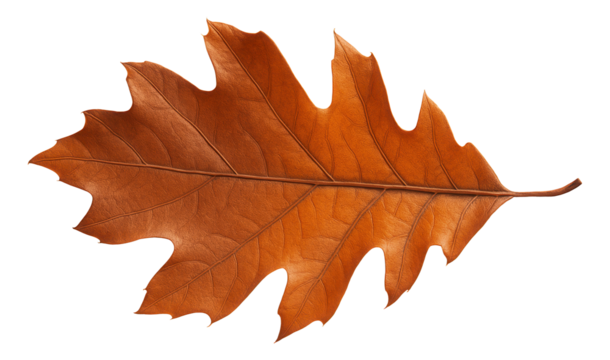 Fallen oak leaf in autumn transition showing a mix of brown and orange hues