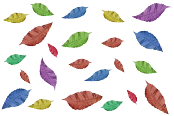 Papeles rasgados de colores rojo, amarillo y morado sobre fondo transparente