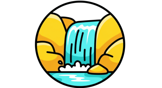 Colorful whimsical illustration of a vibrant community nestled among lush hills under a bright sky with cheerful clouds and playful trees