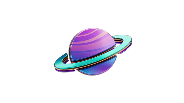 Striking planet with rings PNG isolated on transparent background, celestial body with colorful bands for space exploration and astronomy projects