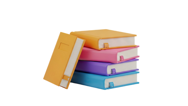 Colorful books on transparent background for educational and reading concepts