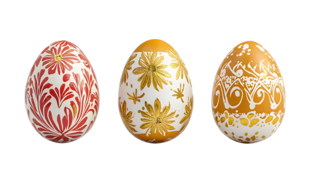 Colorful hand-painted Easter eggs arranged in a charming display showcasing vibrant floral designs perfect for spring festivities isolated on transparent background
