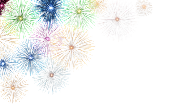 Colorful fireworks burst on transparent background