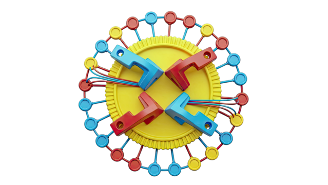 Colorful interlocking gears with transparent background
