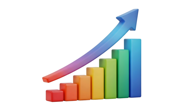 Colorful bar graph illustration on transparent background shows business growth