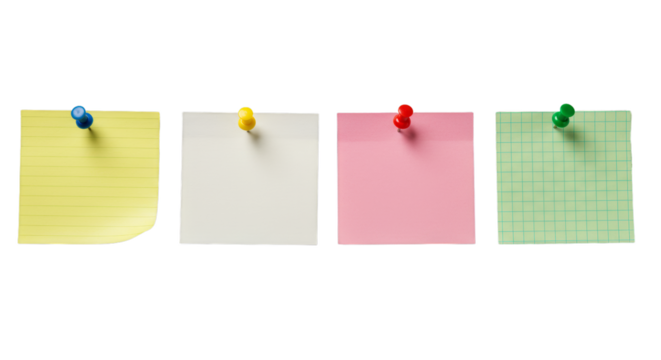 Notes pinned colorful paper — transparent background