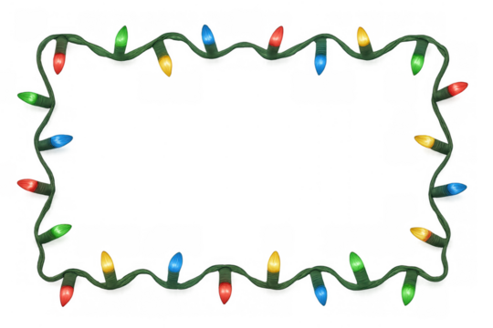 Christmas string light frame creating a festive border with colorful bulbs on transparent background