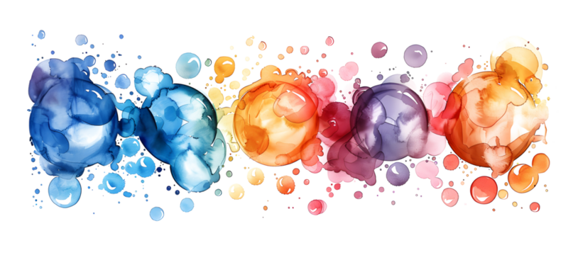 Watercolor colorful bubbles isolated on white and transparent background. Watercolor seamless background. Colorful confetti, cracker, balls, soap bubbles. round abstract spot. Watercolor splash