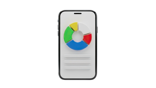 Transparent smartphone displaying informative pie chart
