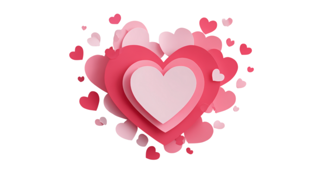 Heart of different shades symbolizing love concept with hearts of various sizes on transparent background for celebrating happy valentine day