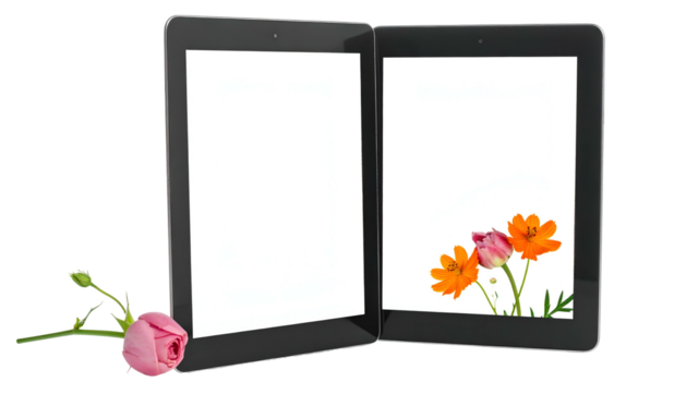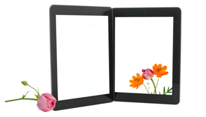 Two smartphones one with colorful screen and one blank isolated on transparent background
