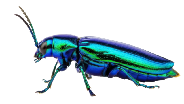 Isolated Jewel Beetle, colorful insect with iridescent exoskeleton and segmented antennae