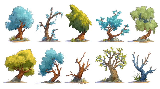 Cute blue dragonflies, cartoon style, large and small, big eyes, friendly expressions, vibrant colors, whimsical design, isolated on transparent background, png