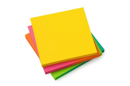 Colorful sticky notes pinned on transparency background, ideal for reminders and organization