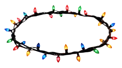 Clock at midnight surrounded by colorful confetti isolated on a transparent background
