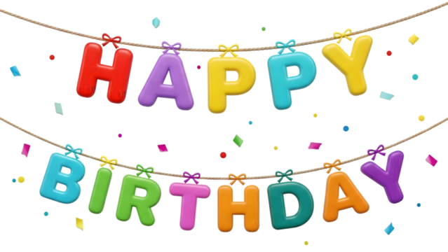 Happy birthday colorful text isolated on transparent background