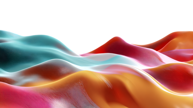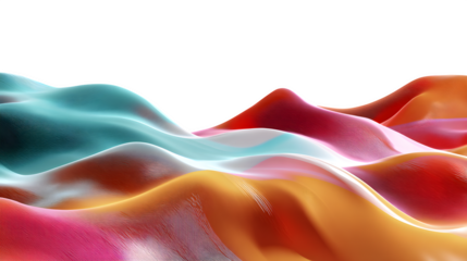 3d illustration of abstract colorful swirling fluid with glossy spheres and bubbles, creating a vibrant and dynamic visual effect with light and reflection, isolated on transparent background