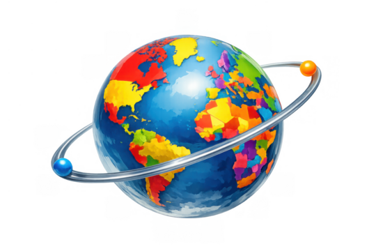 Earth globe spinning with colorful continents representing global connection, travel, and international communication