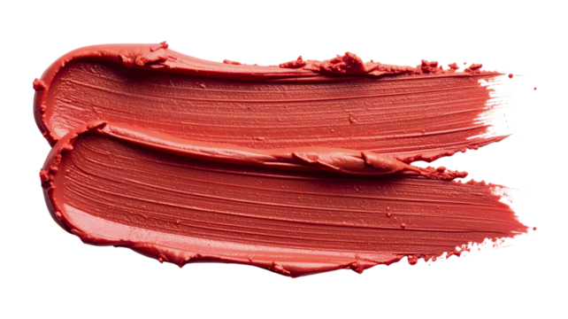 Vibrant red lipstick or gloss smear, showcasing a smooth, glossy texture with fine brush strokes, isolated on transparent background for beauty.