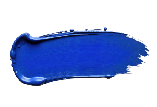 Vibrant blue paint swipe on a transparent background, perfect for artistic designs, backgrounds. Blue paint brush stroke smear color texture swatch background lipstick white smudge isolated.