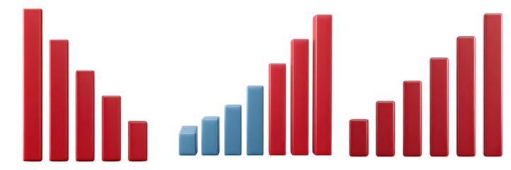 Rising and falling bar graph with red and blue bars showing success and failure trends in business or data analysis