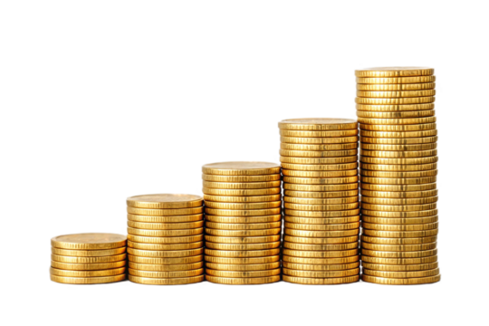 Stacks of golden coins, cutout, PNG isolated on white or transparent background, generated AI