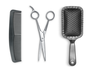 Comb, scissors and brush