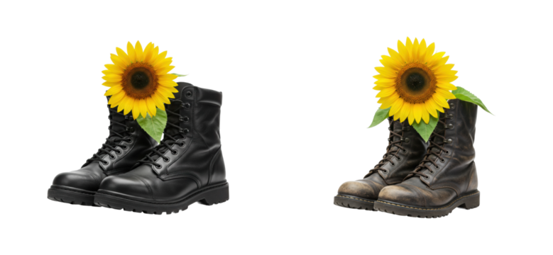 Creative artistry combat boots with sunflowers studio minimalist nature fusion. Cut out set png
