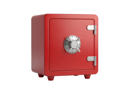 A sturdy black metal safe with a combination lock and keyhole, isolated on a transparent background