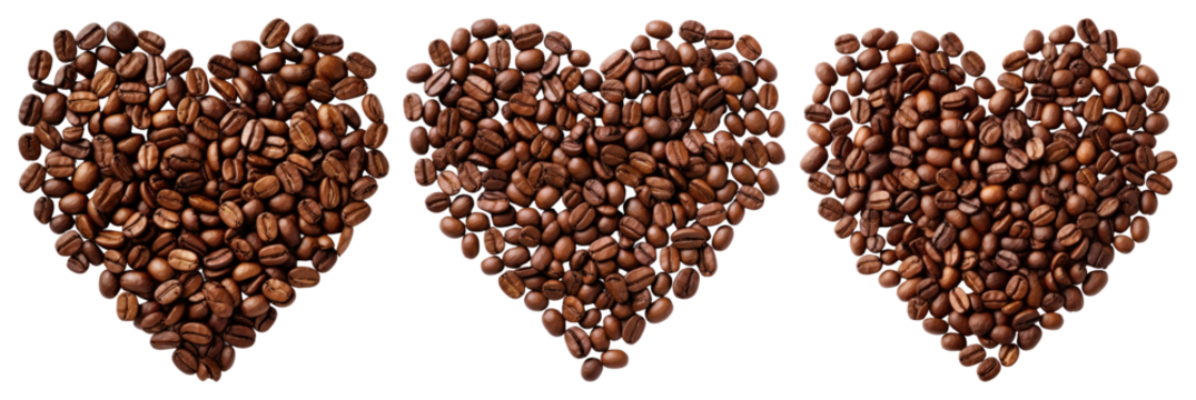 PNG Coffee beans shaped as hearts, element set on transparent background
