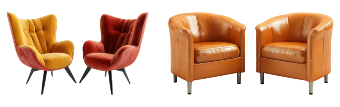 Stylish Collection of Various Armchairs Isolated on Transparent Background