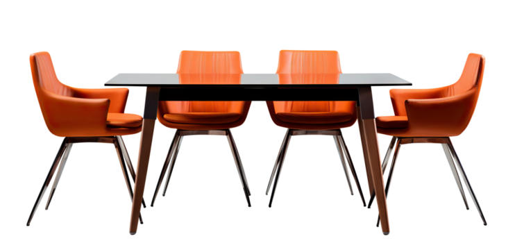 Set of modern wooden table with chairs isolated on a transparent or white background, cut-out, PNG
