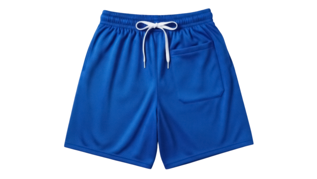 Blue athletic shorts isolated PNG on transparent background, comfortable sportswear for gym, running, basketball, and casual wear