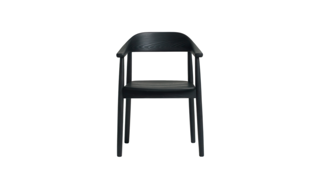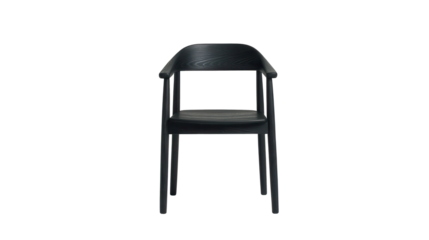 Black wooden armchair with sleek minimalist lines and a smooth curved backrest, offering comfortable modern seating for contemporary homes, offices and studio presentations