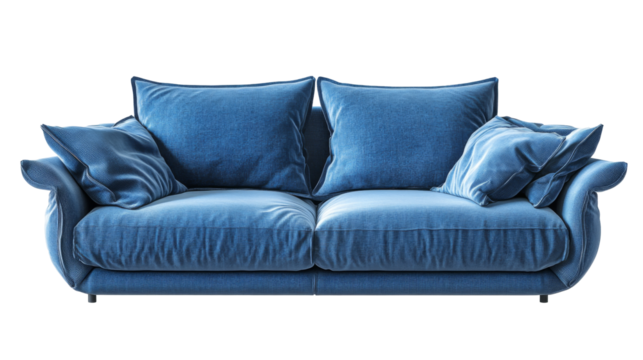 Elegant blue sofa design living room png transparent background stylish white environment modern viewpoint