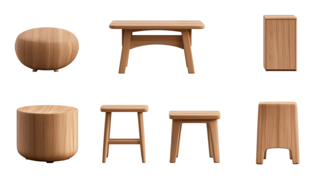 wooden furniture on transparent background
