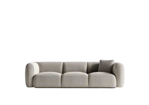 Beige, plush three-seater couch with a single pillow
