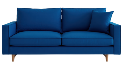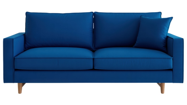 Blue sofa illustration on transparent background for interior design