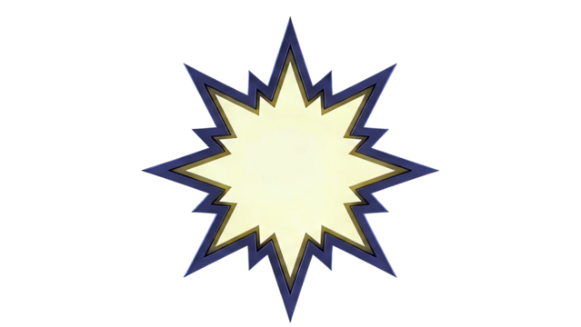 Ultra highresolution, professional studio photography of illustration of explosion shape speech bubble with jagged edges and rays, empty space for text isolated on transparent background