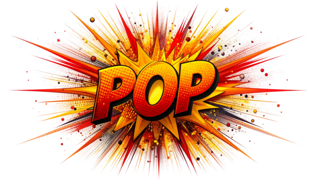 Bold text "POP" explodes outwards, simulating a burst on a black background