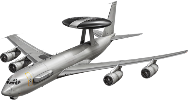 Detailed Military Aircraft with Advanced Radar System for Air Surveillance and Command Center Operations