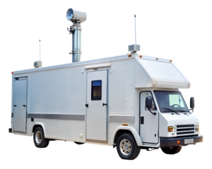 mobile command center white background portable control unit equipped with communication and monitoring tools used in emergency response tactical operations vehicle setup transparent background