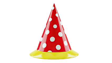 Red and White Polka Dot Party Hat with Yellow Brim