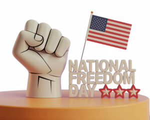 3D rendering celebrates national freedom day with fist and flag on transparent background