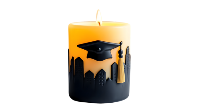 Graduation Candle with Cap and Cityscape