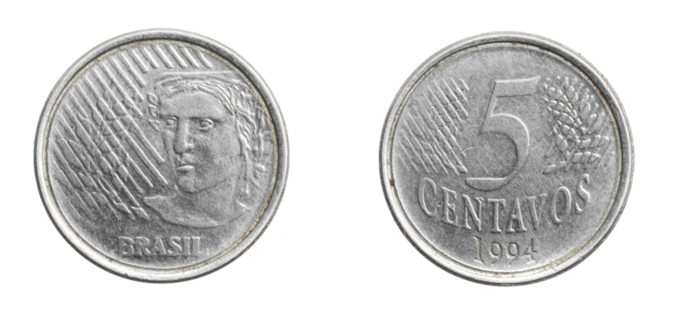 Brazil five centavos coin on white isolated background