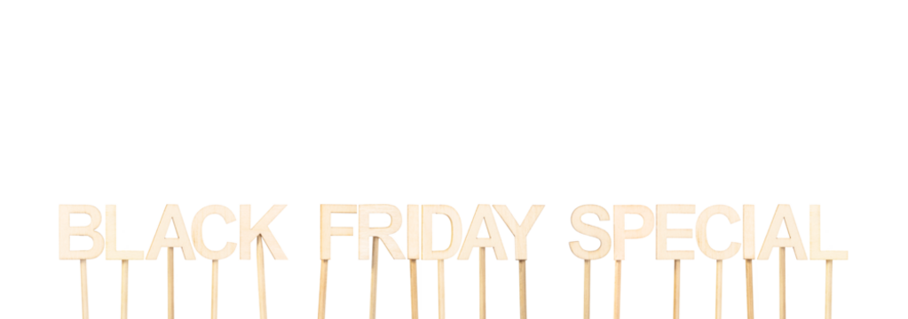 Wooden sign with letters spelling out Black Friday Special used for special offers and exclusive seasonal promotions